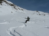 scende direttamente sulla Val Thuras 300 m dopo la cima. Ottime