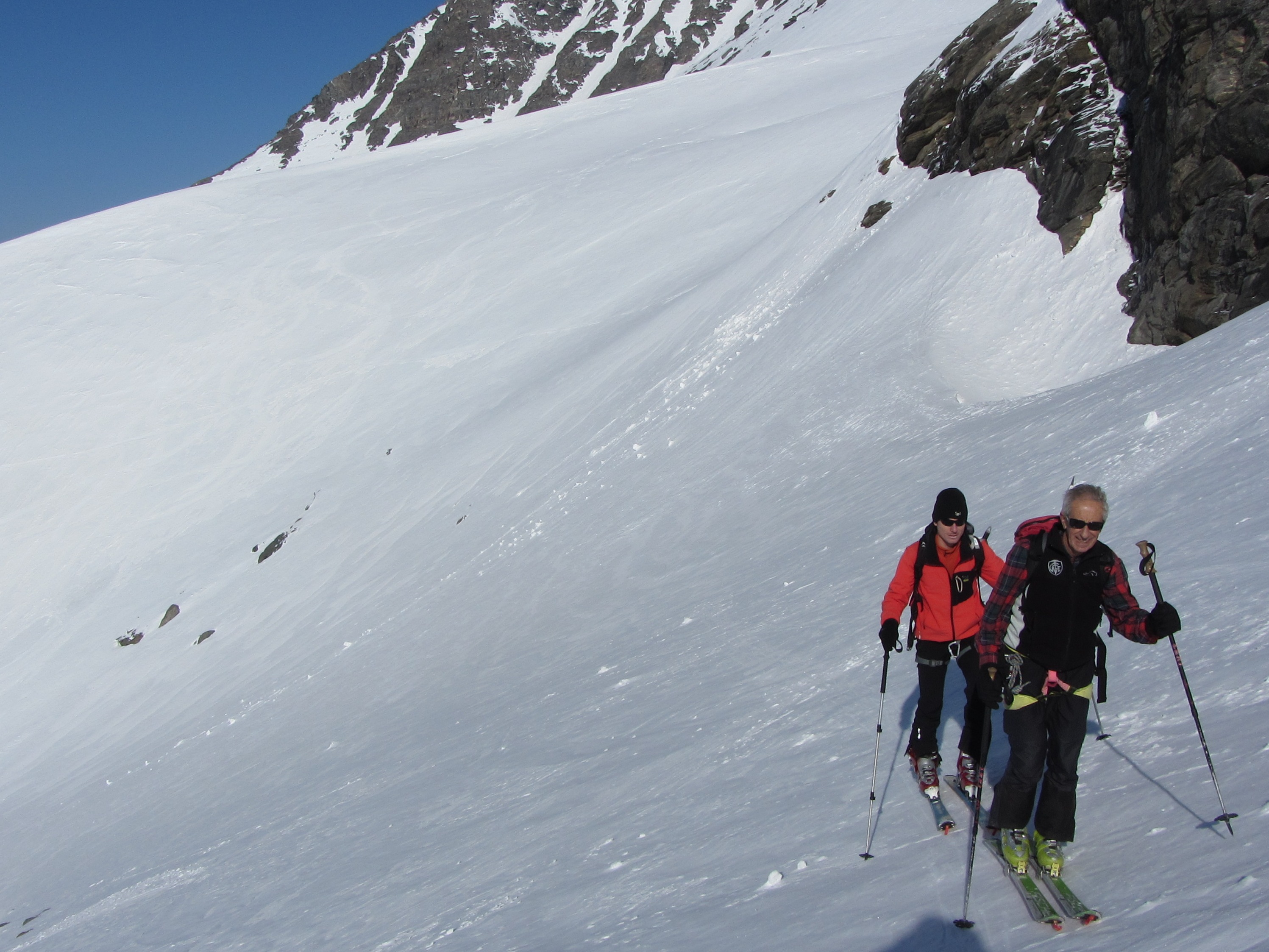 In discesa invece direttamente dalla cima (200m a 40°). La prima