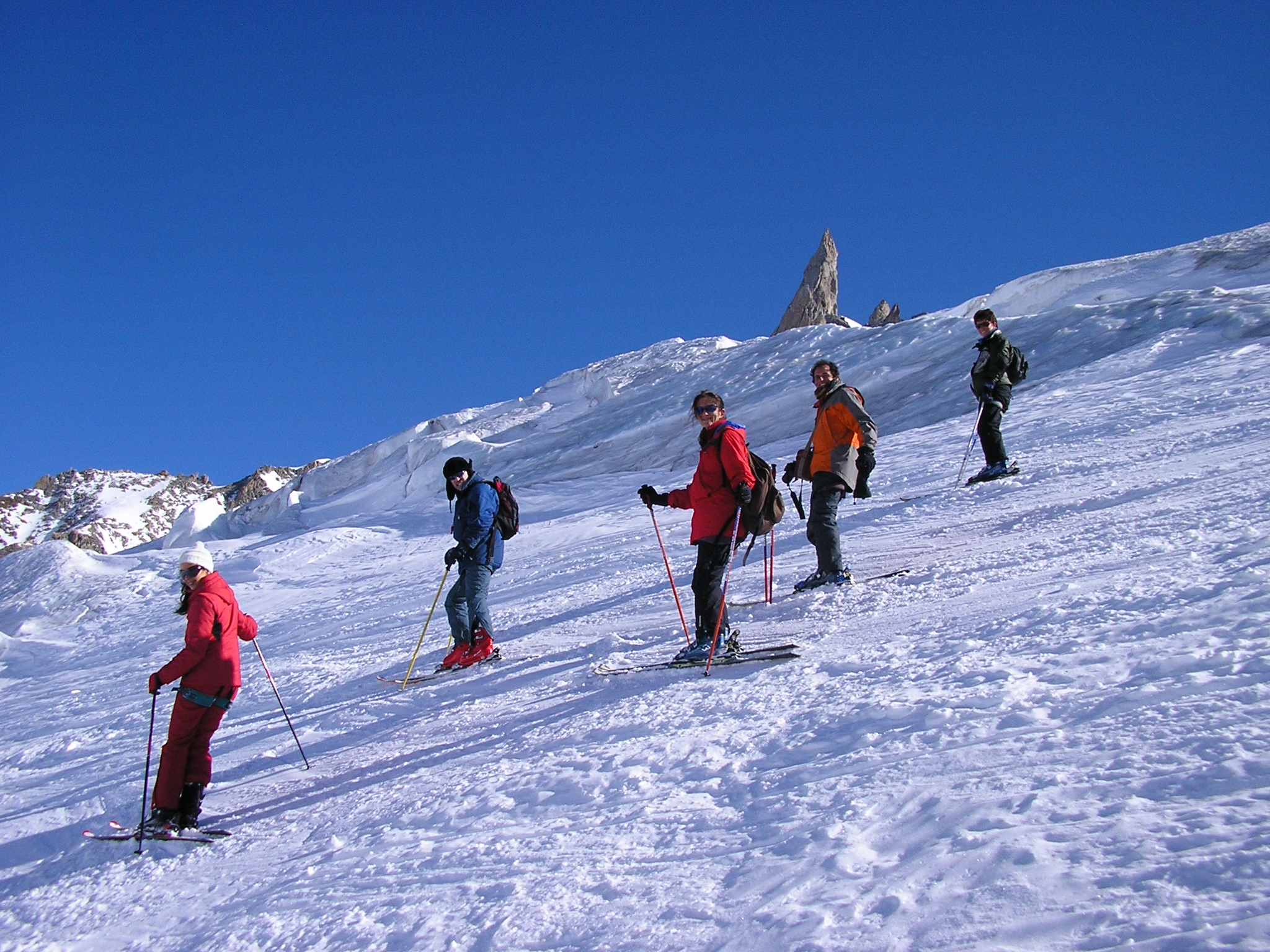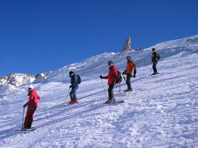 Gruppo pronto a scendere i bei pendii sotto il dente del Gigante.