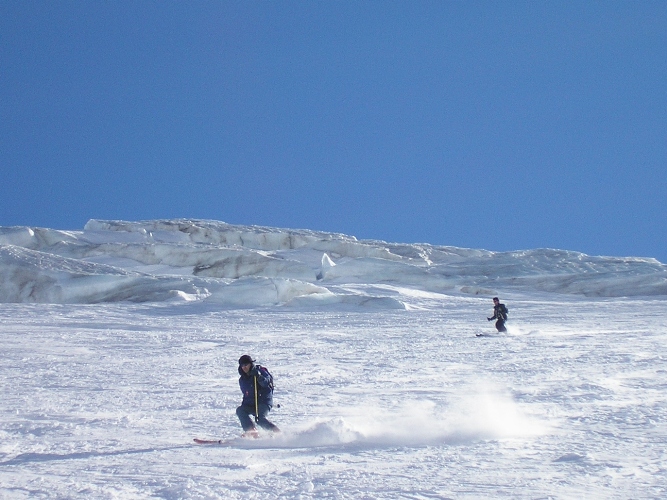 Lino piega deciso sotto i seracchi del ghiacciaio del Gigante.