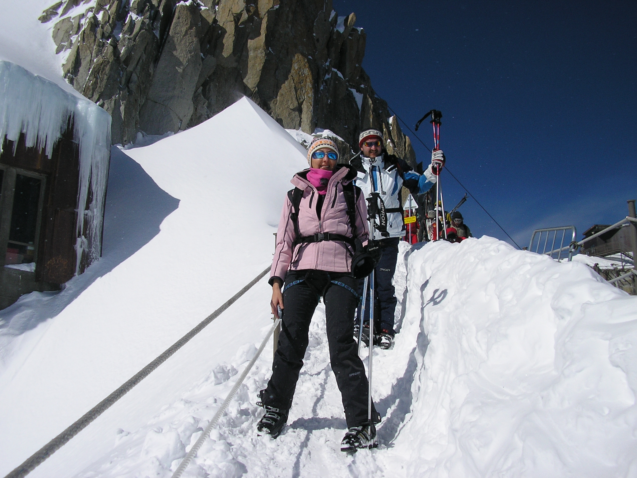 Domenica: Valeč Blanche, discesa dalla cresta dell'Aiguille du Midi.