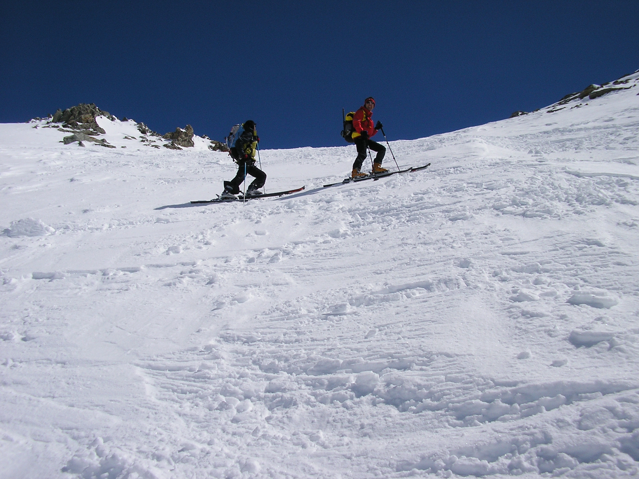 Discesa dal ripido versante sud del col du Mont Brulé (3213m).