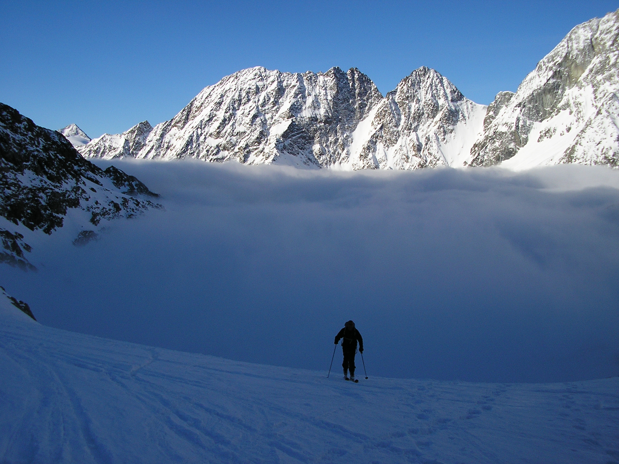 Terzo giorno: salita alla punta Kurz inseguiti dalle nuvole.