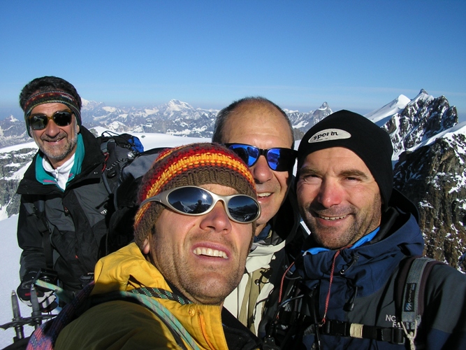 Autoscatto con Maurizio, Roberto e Massimo in cima al Polluce.