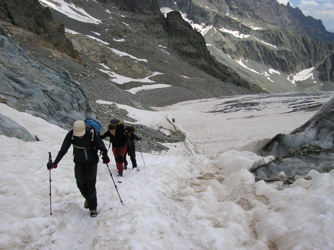 Dopo quasi tre ore si mette piede sul Glacier Blanche.