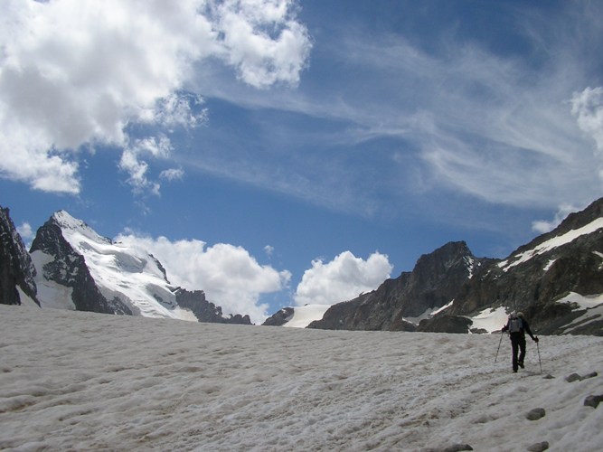 Ed ecco sullo sfondo la nostra meta: Barre des Ecrins e Dome des Neiges.