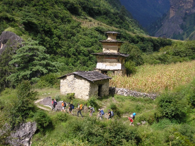 Il gruppo al completo al cospetto dei primi templi tibetani.