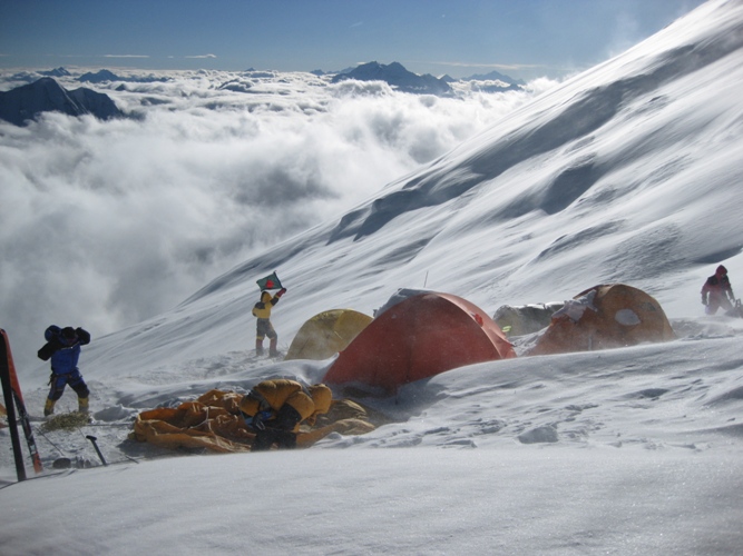 Al mattino bufera di neve al C3 (6800m), decidiamo di scendere.