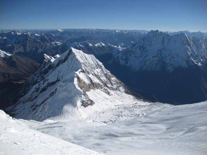 Vista sul ghiacciaio da 6000m, il CB è a destra alla fine del ghiacciaio.