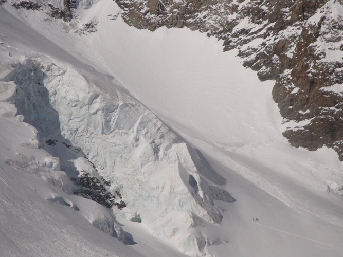 Matteo e Nicolas attaccano il pendio finale della Barre.