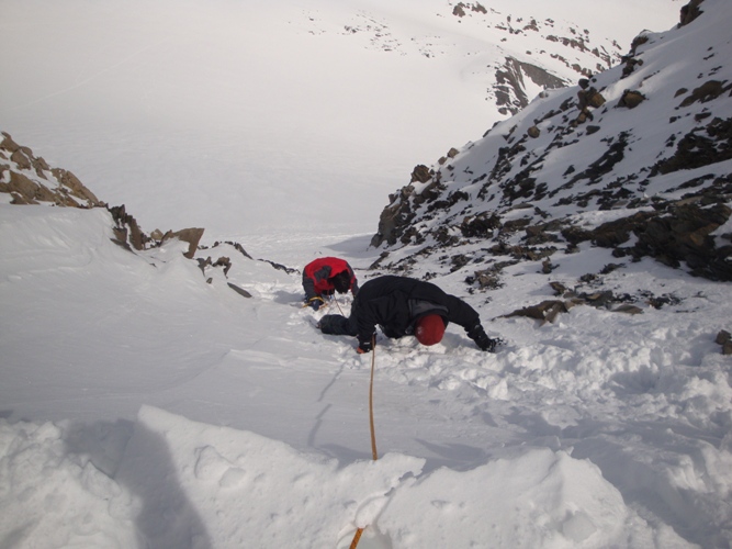 Alessio e Francesca in salita al Goleon nell'ultimo tratto alpinistico.