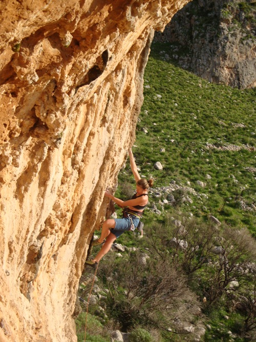 Rosanna su Troppi Duci 7a falesia Crown of Aragorn.