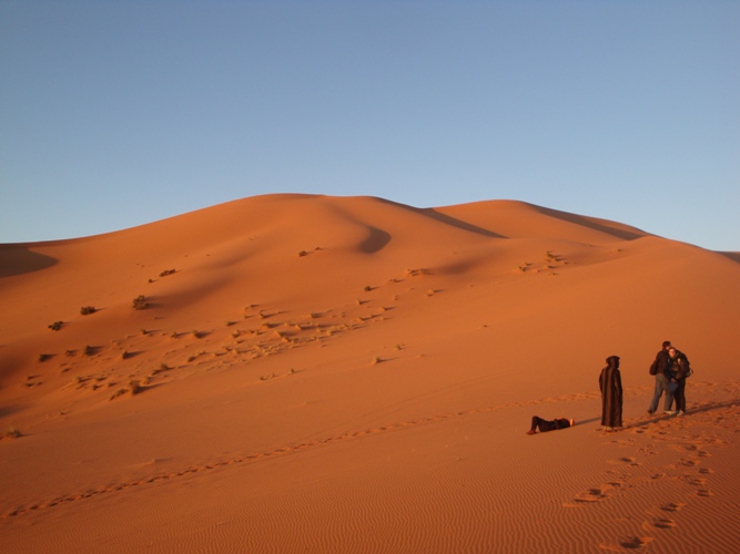 Il sorgere del sole dona colori incredibili alle dune.