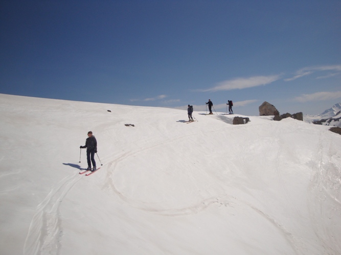 Partenza dal colle alle 11:30 per trovare la neve migliore.