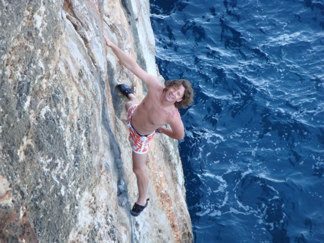"Manzo Andrea Maranzo" su un 6b a cala Sa Nau.