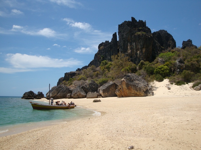 La spiaggia di Nosy Ajombavola con le pareti del settore Mozambique.