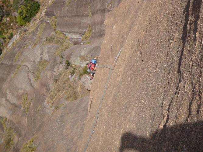 Rosanna prima del delicato traverso del sesto tiro (7a).