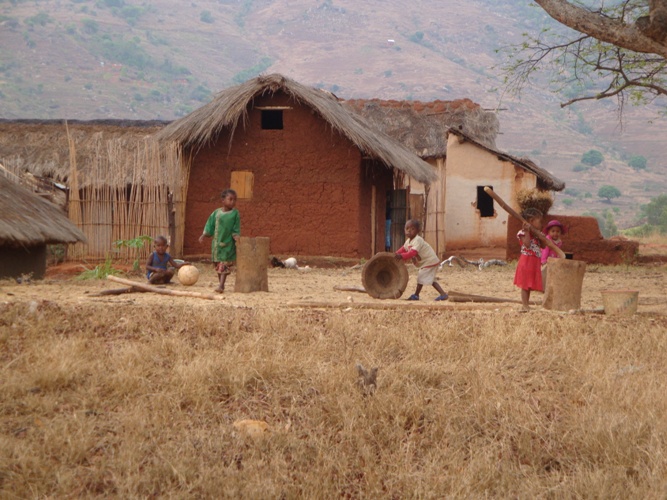 I bambini del villaggio ai piedi dello Tsaranoro in piena attivitą.