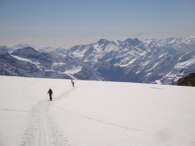 In salita sopra il rifugio Gniffetti.