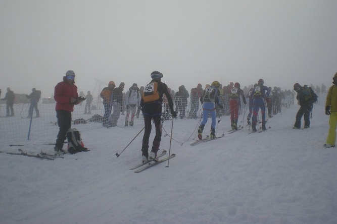 Il nostro passaggio (pettorale 135) al colle del Breithorn, Matteo davanti a scandire il ritmo seguito da Riccardo e da me