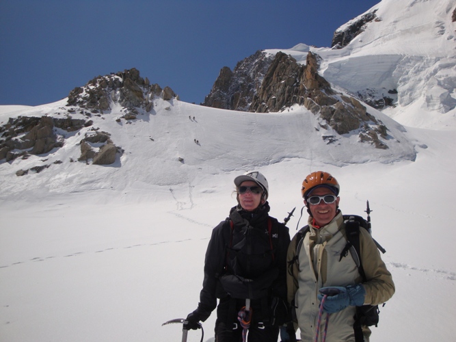Loredana e Roberto, sullo sfondo la cresta della Pointe Lachenal.