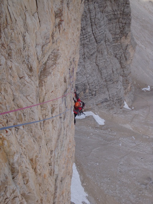 L'arrivo in sosta del tiro di 7a prima del traverso.