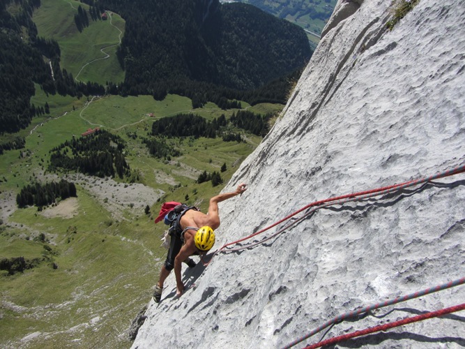 Riccardo spalma sulla placca finale di L4 (7a).