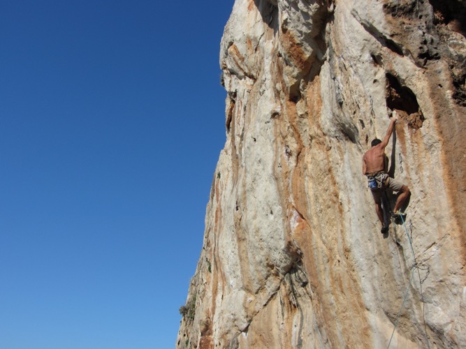 Ricky su "Teamwork" 7c+/8a, settore Campo Base.