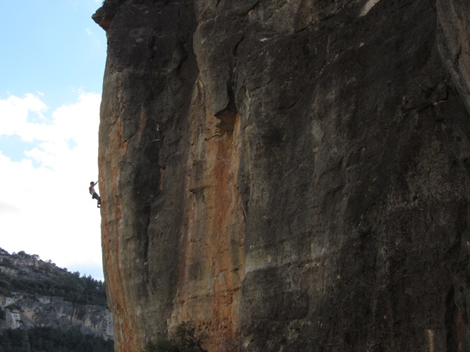 Scalatore su "puceta de llancol" 7c+, settore Siuranella est.