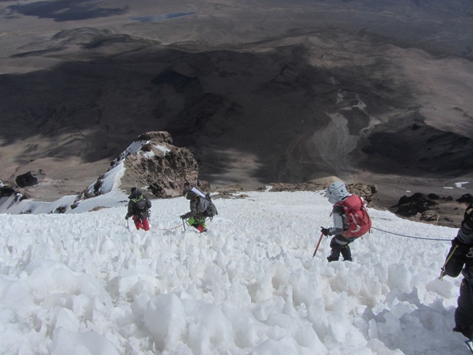 Discesa tra i penitentes.
