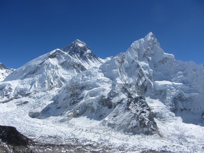 Vista dal Kala Pattar: Everest a sinistra e Nuptse a destra.