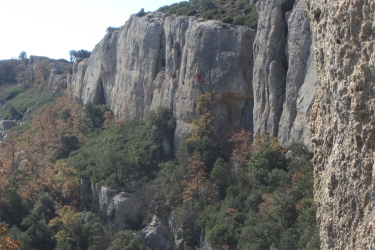 In arrampicata sulle placche verticale del settore Cingles de Sant Joan.