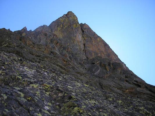 Il Becco di Valsoera, la via percorre il lato sinistro della parete