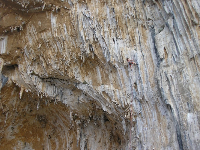 Arrampicata su uno degli incredibili tiri della Grande Grotta.